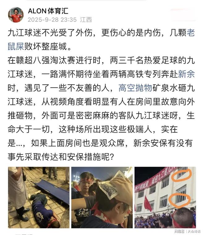 在9月28日晚上的最后一分钟,江西互联网用户透露,柔术的球迷不仅因遭受外部伤害,而且还因几只老鼠狗屎而造成内部伤害而感到难过。在Gantzhu超级联赛的四分之一决赛中,柔术足球爱好者的2-3,000名球迷急于Xinyu,并遇到了友好的人,他们从大海拔的球迷身上扔了矿泉水。从视频的角度来看,很明显,有人故意将房间中的物体推了。外面来访团队有许多柔术球迷。生活比什么都重要。真的...如果上面的房间是观众席位,Xinyu安全是否提前有通信和安全措施?发生了什么?据了解,Gantwo超级联赛四分之一决赛的第二轮比赛是在28下午的晚上7:30在Xinyu体育中心举行的,柔术队对Xinyu团队提出了挑战。高度期待这款游戏的原因是在第一轮比赛中,柔术队的开端良好。在28场比赛的夜间比赛中,双方都战斗了1:1,柔术晋级了Gant-Two-Two超级联赛的半决赛。 “风扇从上面扔了一瓶啤酒,引起了风扇的头部,”现场的视频显示受伤的人从他的头上流血,跌倒在地。医务人员正在现场治疗,然后将其带到担架上。发表录像带的实习生 - 实习生说,他无法去现场观看比赛:“我鼓励他的城市在家里观看现场直播。结果,与一群粉丝一起看到这个场景真的很安静。”一位实习生说:“从二楼扔一瓶,攻击球迷不仅是质量和道德问题,而且作者必须受到严厉的惩罚。”值得一提的是,这是游戏“ Gang Chao” Xinyu vs. Jiu Jitsu之后发生的紧急情况。一个男性扇子躺在地面上,用柔术上衣。他身边旁边的柔术的粉丝表示了这一事件的狂热,现场的警察说,他们会发现他们将北京新闻,记者得知Xinyu足球协会得知警察在调查中进行了干预,受伤的球迷被送往医院,并从Xinyu公共安全处的Yushi分支机构送往医院,他说,此次通知已被送达。 2025年,甘特沃超级联赛结束了,半决赛的席位终于确定了。四支球队,富裕(Fuzhou),Yichun和柔术(Jiu-Jitsu)脱颖而出并晋级半决赛,球迷们在等他。紧张的气氛和活动的美好时光似乎使人们回到了热情的绿地。 Xinyu突然的不和谐值得反思。团队的胜利或失败并不重要。关键是享受观看游戏的过程。这样的冲动我的行为最终会伤害别人和你自己!您如何看待这个?